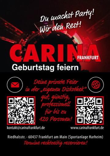 - An Wochenenden entsteht die event location "CARINA" für private Feiern -